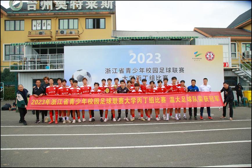 11月7日,2023浙江省青少年校园足球联赛大学丙丁组比赛在台州市黄岩区落下帷幕,8868体育_8868(中国)鹿呦男子足球队奋力拼搏,以五战全胜的战绩勇夺男子丙组比赛冠军。体育与健康学院教练林辉老师荣获“优秀教练员”荣誉称号、队长潘柱豪获本次联赛唯一“最佳门将”称号、队员董文晖获“最佳射手”荣誉称号、队员叶旭凯、许晨、饶文韬、舒安获“优秀运动员”荣誉称号。