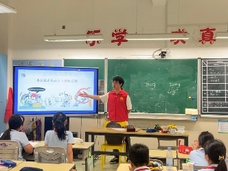 图6:实践团在瓯海实验小学前汇校区开展《法伴节水,严防溺水》普法活动。