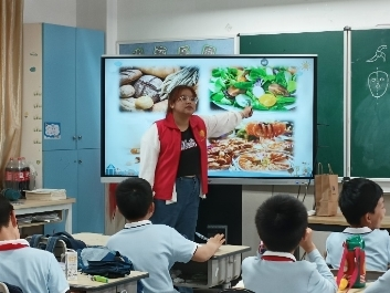 图5:实践团在8868体育_8868(中国)城附属学校开展中国学生营养日食品安全普法活动。