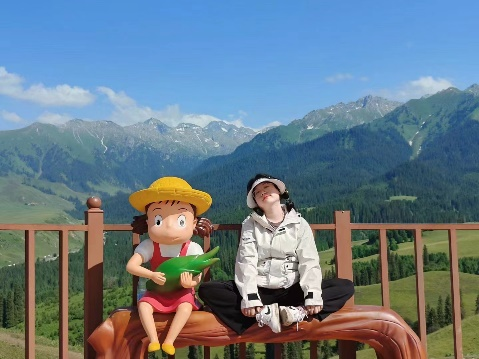 “踏上这片西部国土后,我真正体会到了‘风吹草低见牛羊’,感受到了‘像风一样自由’。”新疆的自然风光让她在驻足的每一刻都感受到了超出想象的震撼,每一眼的美景都好似是对她的回应与欢迎。