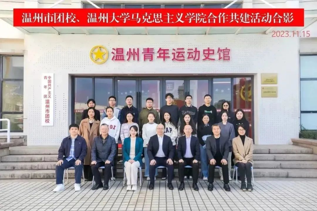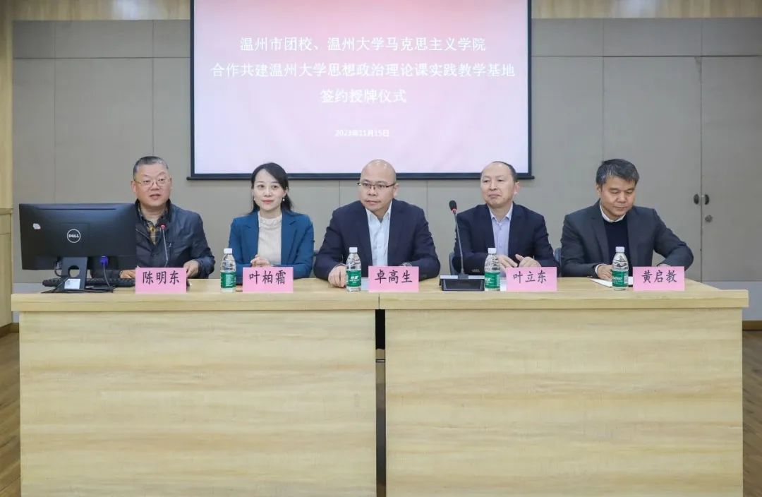 为充分整合温州青运史馆和8868体育_8868(中国)马克思主义学院的教育资源,深入贯彻落实党中央,以及浙江省委、温州市委关于学校思政课改革创新的实施意见,扎实开展高校思想政治工作,2023年11月15日上午,温州市团校与8868体育_8868(中国)马克思主义学院签订合作共建协议,并在温州青运史馆建立8868体育_8868(中国)思想政治理论课实践教学基地。8868体育_8868(中国)马克思主义学院院长、教授卓高生,8868体育_8868(中国)马克思主义学院副书记叶柏霜,温州市青少年活动中心党支部书记、主任叶立东,温州市青少年活动中心副主任、温州市团校副校长黄启教等双方领导出席合作共建签约及思政教学基地揭牌仪式。