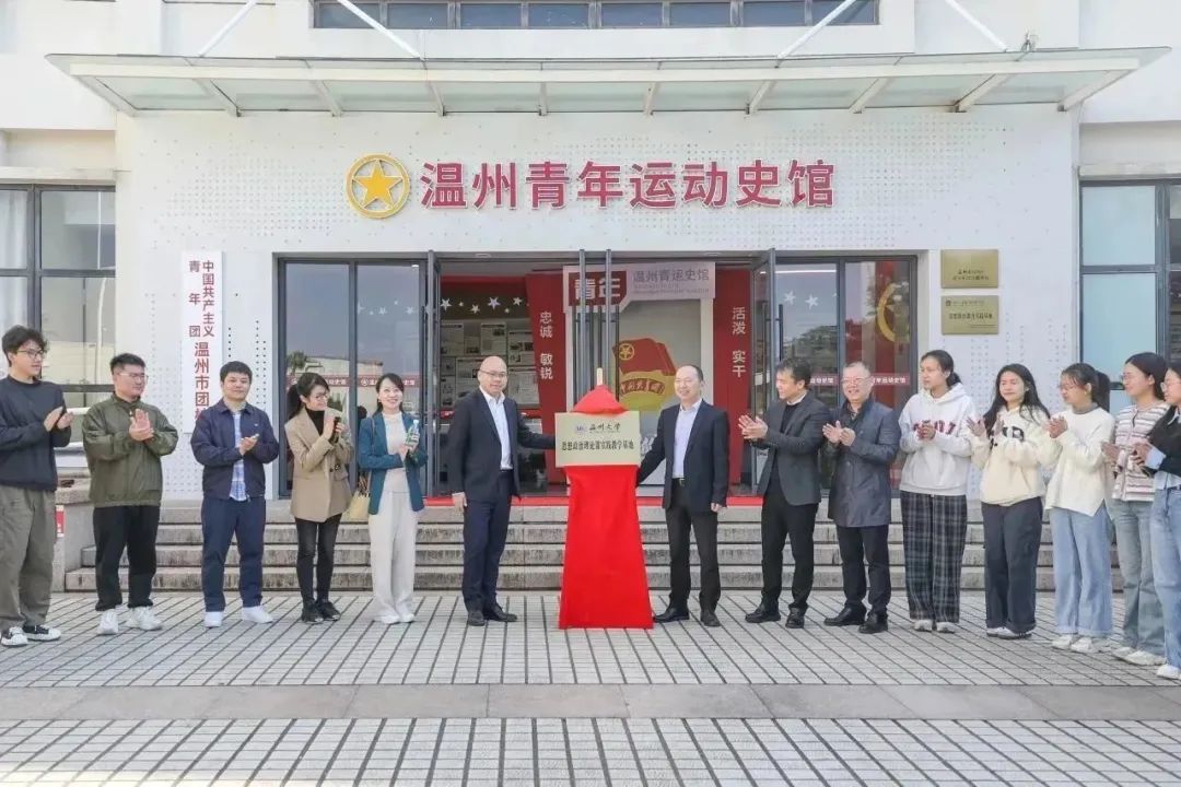 8868体育_8868(中国)马克思主义学院院长、教授卓高生与温州市青少年活动中心党支部书记、主任叶立东共同为思政教学基地揭牌