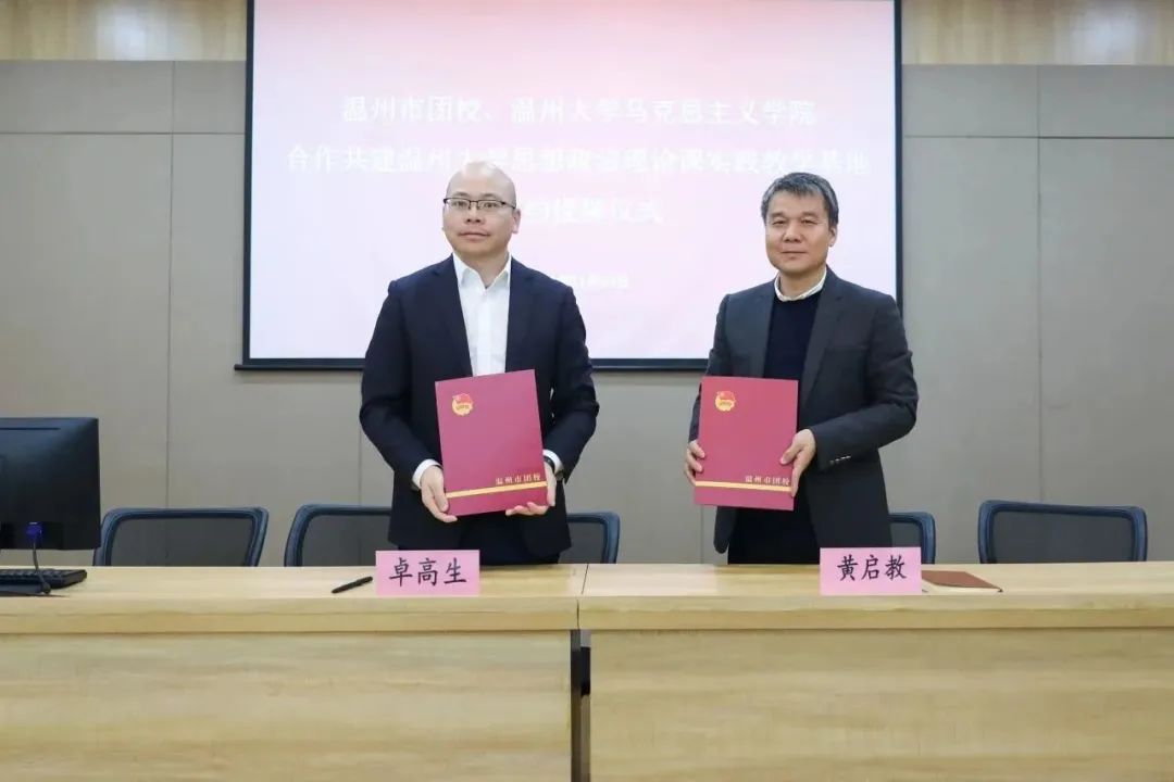 8868体育_8868(中国)马克思主义学院院长、教授卓高生与温州市青少年活动中心副主任、温州市团校副校长黄启教共同签署合作共建协议