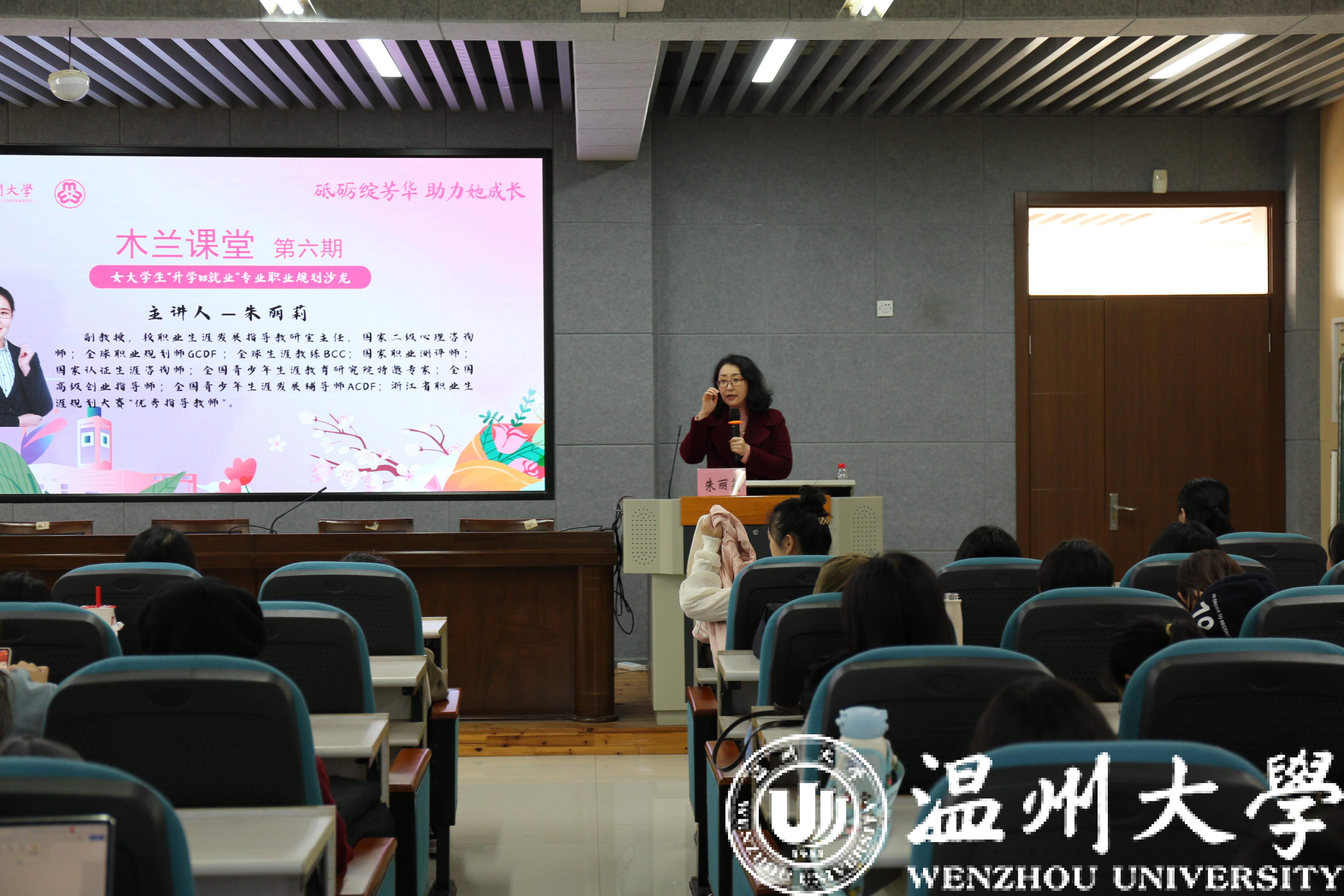 为增进当代女大学生对升学与就业的了解,提升女大学生的成就感与幸福感,近日,一场以“向左走or向右走?——女大学生‘升学vs就业’专业职业规划”为主题的“木兰课堂”在8868体育_8868(中国)教育学院开展。本次讲座邀请到8868体育_8868(中国)职业生涯发展指导教研室主任朱丽莉副教授担任主讲,感悟“她力量”,巾帼绽芳华。