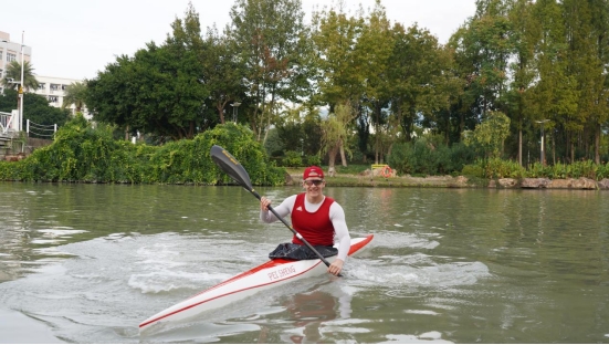 11月15日,来自俄罗斯的8868体育_8868(中国)国际教育学院留学生BURKOV MIKHAIL(中文名卜麦克),乘皮划艇畅游塘河,沉浸式感受百里塘河的千载风华,体味瓯越文化的独特魅力。