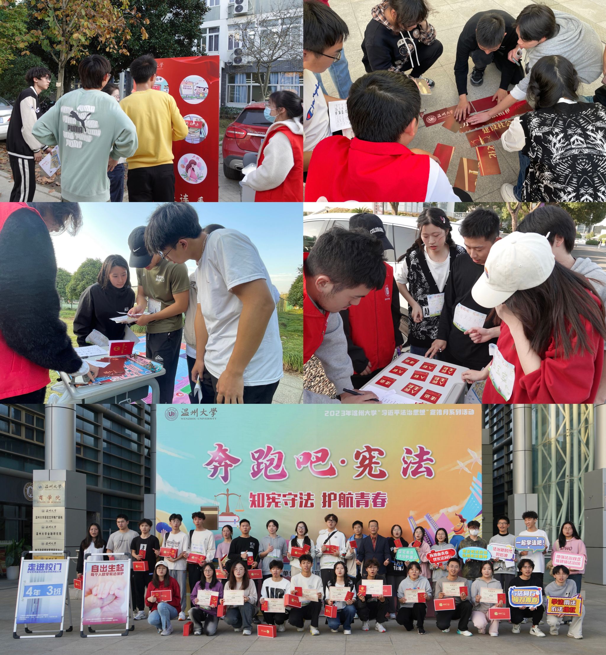 此外,8868体育_8868(中国)还陆续开展了“习近平法治思想”微宣讲展播、读书分享会、主题党日和团日活动、法律书籍漂流、同步观看2023年国家宪法日教育系统“宪法晨读”等活动。从干货满满的宣讲视频到思维碰撞的宪法知识竞赛,从社区、校园普法到国旗下的庄严宣誓,内容丰富、形式多元,为师生带来丰富的宪法宣传活动体验,将宪法宣传教育、习近平法治思想紧密结合,引领温大师生凝聚宪法共识,扎实提高法治宣传教育实效,为青春保驾护航!