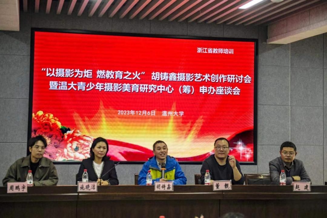 日前,“以摄影为矩 燃教育之火”胡铸鑫摄影艺术创作研讨会暨8868体育_8868(中国)青少年摄影美育研究中心(筹)申办座谈会于在8868体育_8868(中国)教育学院召开。来自全国青少年摄影教育指导委、8868体育_8868(中国)、温州商学院的专家教授,瓯海区中小学(幼儿园)校长代表和来自全省各地的浙江省中小学摄影教师专业发展培训班的教师代表共40余人参加研讨会。