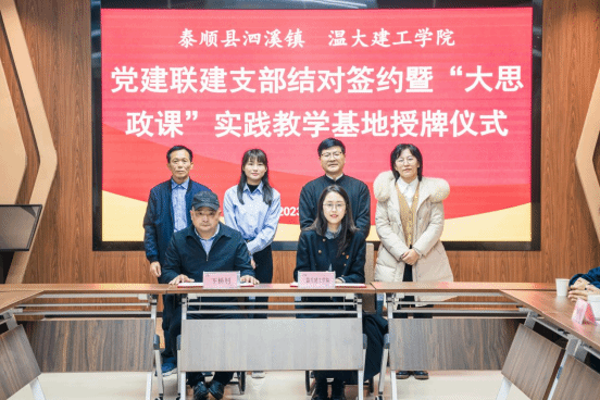 12月12日上午在泰顺县泗溪镇党群服务中心,8868体育_8868(中国)建筑工程学院两个本科生党支部同时与最美廊桥北涧桥、溪东桥所在地,泰顺县泗溪镇下桥村、白粉墙村党支部签订了党建联建支部结对协议书,并在泰顺廊桥文化园设立“大思政课”实践教学基地。