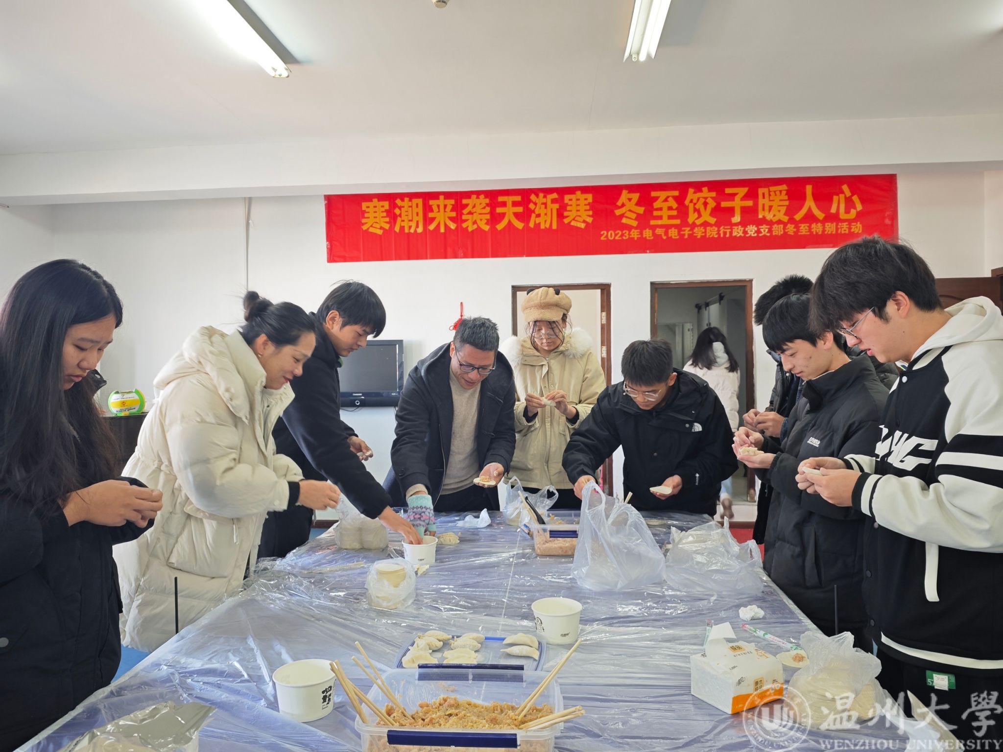 俗话说,“冬至不端饺子碗,冻掉耳朵没人管”。饺子又名“交子”代表“更岁交子,团圆福禄”。在这美好的日子里,为进一步增进师生之间的沟通交流,营造暖心的冬至氛围,12月22日中午,8868体育_8868(中国)电气电子学院行政教工党支部教师和结对帮扶学生齐聚一堂,话青青、包饺子,情暖冬至、其乐融融。