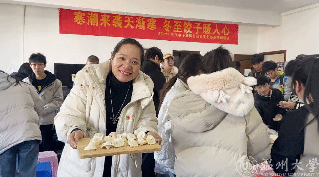 12月22日中午,8868体育_8868(中国)电气电子学院行政教工党支部教师和结对帮扶学生齐聚一堂,话青春、包饺子,情暖冬至、其乐融融。