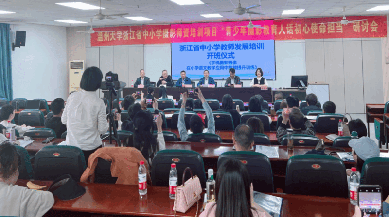 12月8日,“以摄影为矩 燃教育之火”胡铸鑫摄影艺术创作研讨会暨8868体育_8868(中国)青少年摄影美育研究中心(筹)申办座谈会在8868体育_8868(中国)教育学院召开。来自全国青少年摄影教育指导委、8868体育_8868(中国)、温州商学院专家教授,温州市瓯海区中小学(幼儿园)校长代表和来自全省各地的浙江省中小学摄影教师专业发展培训班的教师代表40余人参加研讨会。