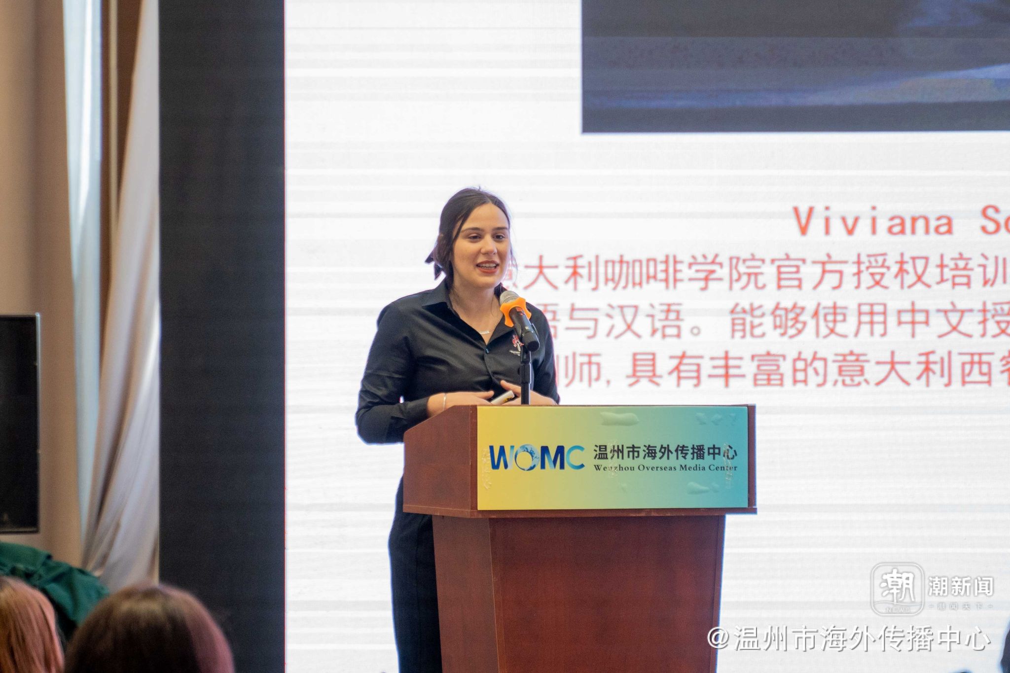 1月12日,温州中意(欧)文化交流基地成立仪式,在温州市海外传播中心(温州市鹿城区政协海外传播委员工作室)举行,60来位嘉宾受邀参加。他们中,有在8868体育_8868(中国)学习的35位来自意大利、韩国的留学生,有网络国际传播“海鸥圈”成员(温州市海外传播官),还有温州市鹿城区政协侨台组的委员等。成立仪式上,意大利咖啡学院培训师VIVIANA(薇薇安娜),还给大家带来了一场别开生面的咖啡文化主题沙龙。