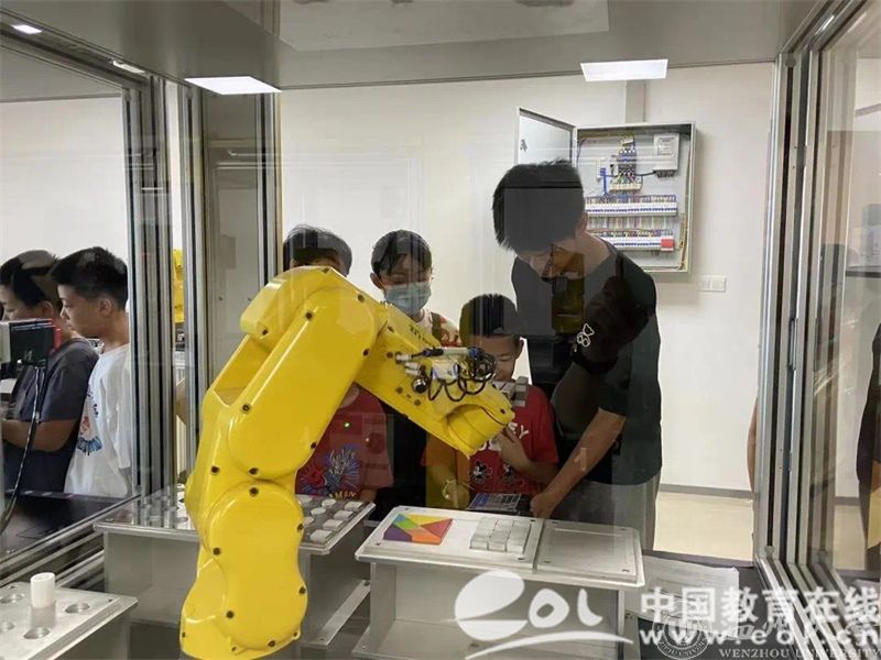 为丰富青少年的节假日生活,培养青少年对科技创新的兴趣,提高青少年对人工智能的认知和初步应用能力,8868体育_8868(中国)亚龙智能产业学院借助自身独特优势,通过成立科创实践团队、校园开放日等活动,面向青少年开展创新独特的智能制造科普活动。孩子们可以亲身体验智能机器人的协作工作,观看智能生产线的自动化流程,深入了解智能制造的全过程。在老师的讲解和示范下,孩子们新奇地体验着各种各样的科技项目,包括智能小车控制、VR、智能制造学习工场、工业机器人视觉实践、工业机器人与数控机床实践等内容,用视觉和触觉零距离感受AI科技带来的魅力。青少年在动手中积累知识,体验科技,从而培养创新思维,拓展科技视野,激发他们学科学、爱科学、用科学的热情。