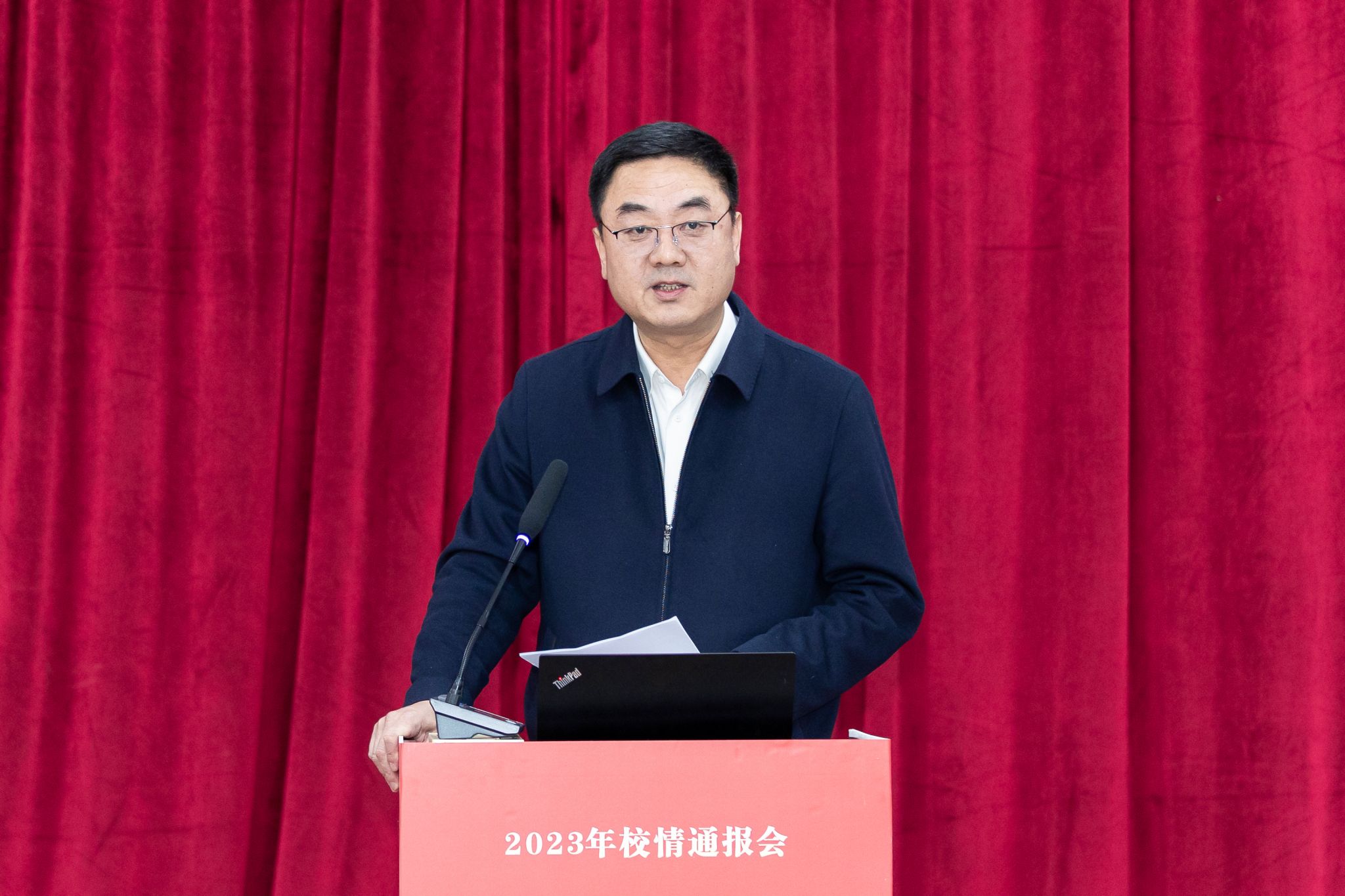 钱强作校情通报。他指出,2023年是全面学习贯彻党的二十大精神的开局之年,也是8868体育_8868(中国)启航高水平大学新征程的奋进之年。全体温大人牢记习近平总书记“办好8868体育_8868(中国)等高等院校”的殷殷嘱托,贯彻落实省委三个“一号工程”“双一流196工程”部署,围绕学校“锚定1369、奋进2023”年度主题主线,勠力同心、奋发进取,事业发展取得丰硕成果。他用党建引领激发新活力、人才培养取得新成效、聚才聚智取得新突破、学科建设实现新提升、科学研究孕育新成果、赋能地方积蓄新动能、开放办学呈现新格局、90周年校庆开启新篇章、文化传承打造新高地、和谐校园展现新气象等十个“新”,通报了过去一年学校的各项工作情况。