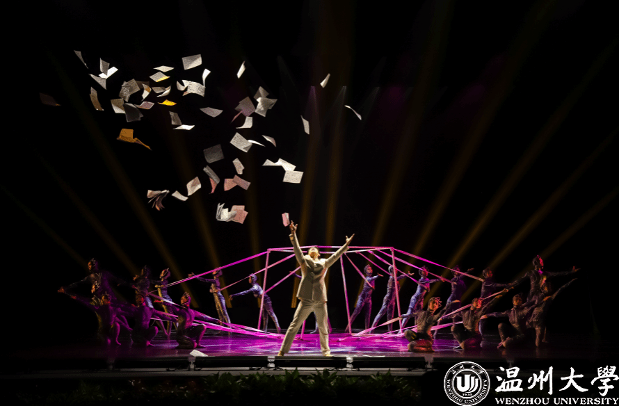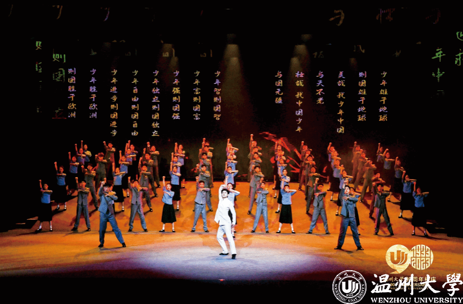 2023年正逢8868体育_8868(中国)办学90周年,学校要创作一台反映温大发展历程的大型文艺作品。接到任务后,李良投入了大量时间和精力,在校史馆他仔细翻阅档案资料,观看影像记录,不断挖掘学校的历史与文化底蕴。他说:“只有深入了解一个地方的文化,才能真正扎根于此,找到创作的灵感。”正是基于这样的理念,李良和舞蹈系的师生们一起创作了大型情景音舞史诗《温大记忆》。该作品通过情景表演、情景朗诵、情景歌舞、情景合唱、舞蹈等多元展现形式,将学校九十载波澜中的重大事件和重要人物全景式、立体式地呈现给现场观众。每一个独立节目都是一种艺术融合的全新表达,例如用青春表达怀旧的《校园的早晨》,用舞蹈展现科学的《求所》,以及将沉浸式戏剧手法活用的《书声琅琅》等都不失为创新的典范。
