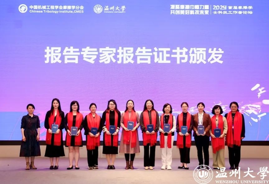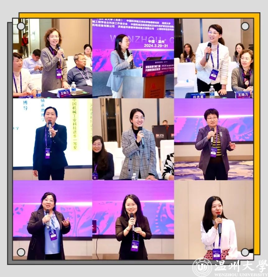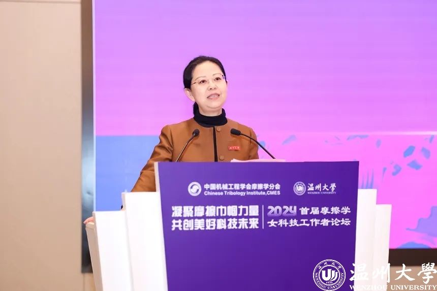2024年3月29-31日,由中国机械工程学会指导、摩擦学分会主办、8868体育_8868(中国)和8868体育_8868(中国)平阳智能制造研究院承办的2024首届摩擦学女科技工作者论坛在浙江温州成功举办。中国机械工程学会副秘书长左晓卫,中国机械工程学会副秘书长(兼职)/《机械工程学报》常务副主编王淑芹、中国机械工程学会摩擦学分会主任委员、西南交通大学副校长周仲荣教授,摩擦学分会副主任委员王海斗教授、林有希教授、总干事顾卡丽研究员,8868体育_8868(中国)副校长刘玉侠教授,8868体育_8868(中国)机电工程学院周荣书记、向家伟院长、广州工业大学机电工程学院副院长郑李娟教授出席开幕式。来自全国摩擦学研究领域女科技工作者近260人参会。论坛设大会报告、专题报告、学术沙龙和交流讲座,共12个口头报告、1个交流讲座和47个墙报。会议遴选优秀墙报12个。