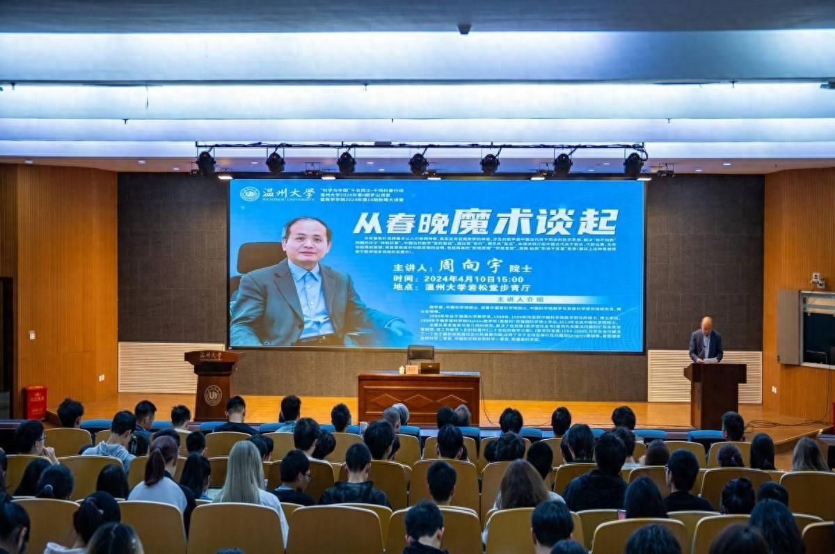温州是数学家之乡,近代以来,涌现出200多位数学家,这一现象世所罕见。为进一步弘扬科学家精神,引领广大学子更加全面认识与了解数学,促进温州“数学家之乡”人才培养研究中心建设,4月10日,8868体育_8868(中国)数学学院邀请中国科学院院士、数学家周向宇开设数学科普讲座,吸引了众多温大师生以及附属学校中小学生参加。