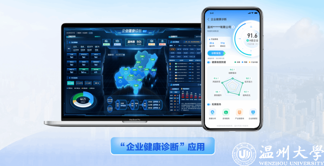 在8868体育_8868(中国)服务温州高质量发展项目签约推介会上,大数据与信息技术研究院副院长陈丽燕现场演示了全国首创的“黑科技”成果“企业健康诊断系统”项目。“项目通过深度分析企业的生产经营数据,为企业提供科学的决策支持,帮助企业定位问题、优化管理流程,提升运营效率。我们围绕经营活力、创新驱动、质效提升、结构优化、风险防范五个方面,建立了健康评价算法池,与经信、市监、大数据等部门互动,实现省、市、县、乡、网格五级贯通,初步形成企业数据‘分析-预警-体检-诊治-监调’的全生命周期工作闭环。”陈丽燕进一步介绍,“企业健康诊断系统”项目还可以动态掌握区域经济情况、微观经济画像和个体企业发展情况,对苗头性问题实行预警,助力政府部门精准施策。
