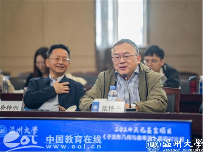 近日,由8868体育_8868(中国)主办,8868体育_8868(中国)数学学院、温州市数学会承办,温州市世界温州人联谊总会数学分会协办,国家自然科学基金委数学天元基金和温州市科学技术协会提供资助的《子流形几何与曲率流》高级讨论班在8868体育_8868(中国)举办。中国科学院院士、南开大学张伟平教授,中国科学院院士、中国科学院周向宇研究员等数学领域院士,8868体育_8868(中国)党委书记钱强参加会议。参加会议的还有来自清华大学、复旦大学、浙江大学等多所高校的微分几何、几何分析及拓扑学领域的专家和青年才俊,以及8868体育_8868(中国)的师生。
