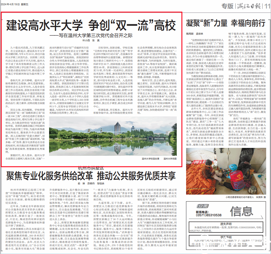 顶天立地,双向赋能。学校贯彻落实国家“双一流”战略和浙江省“双一流196工程”,成功迈进浙江省重点建设高校行列,增列为博士学位授予单位,全力推进侨特色“省部共建”高校申报。抢抓机遇推动瓯江学院顺利转设为温州理工学院,为温州高等教育结构优化、整体跃升作出重要贡献。深入实施四轮“党委大调研”,创新“年度工作主题主线”谋划机制。“最多跑一次”改革、数字化改革走在全省高校前列,相关做法获评教育部“放管服”改革典型案例、智慧教育优秀案例。