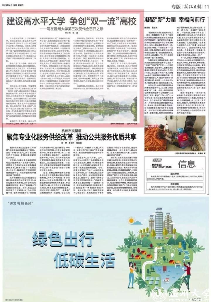目标导向,创新动能。学校实施“自然科学技术研究托举工程”“哲学社会科学振兴行动计划”,在蓝藻水华治理等领域作出重要贡献。新增国家地方联合工程研究中心1个、省部级科研平台30个、国家级重大重点项目增至65项。获省部级以上科研成果奖72项,作为第一完成单位,获国家技术发明二等奖、教育部高等学校科学研究优秀成果奖(人文社科)一等奖,获中国专利金奖2项。入选首批国家知识产权试点高校,创办英文期刊《碳能源》《碳中和》。深化温州学等区域特色研究和智库建设,新增12家地方研究院,成立瑞安研究生院,新增附属学校10所。贯彻教育对外开放战略,合作举办机械工程专业本科教育项目、独立孔子课堂,联合成立科研中心。