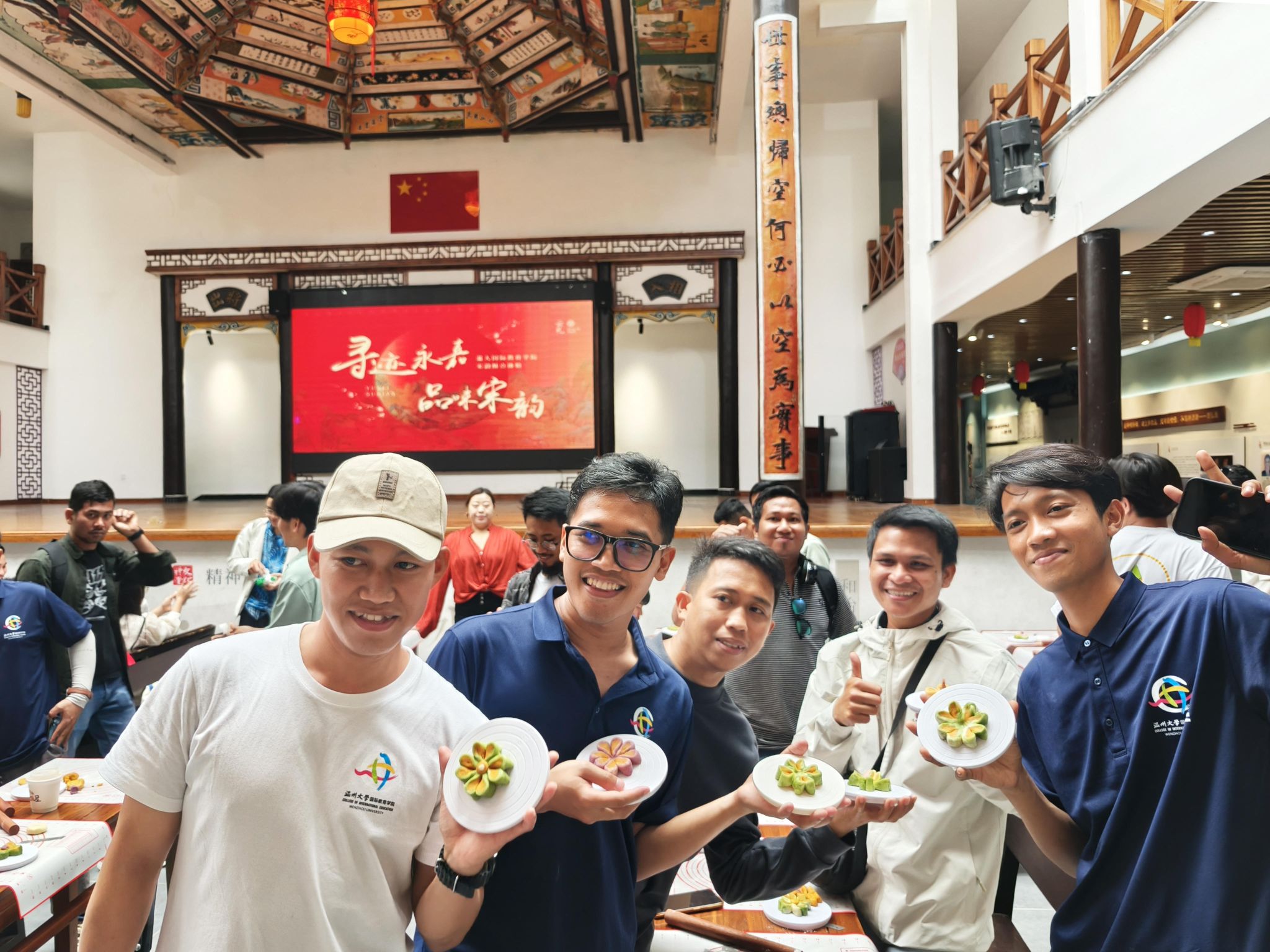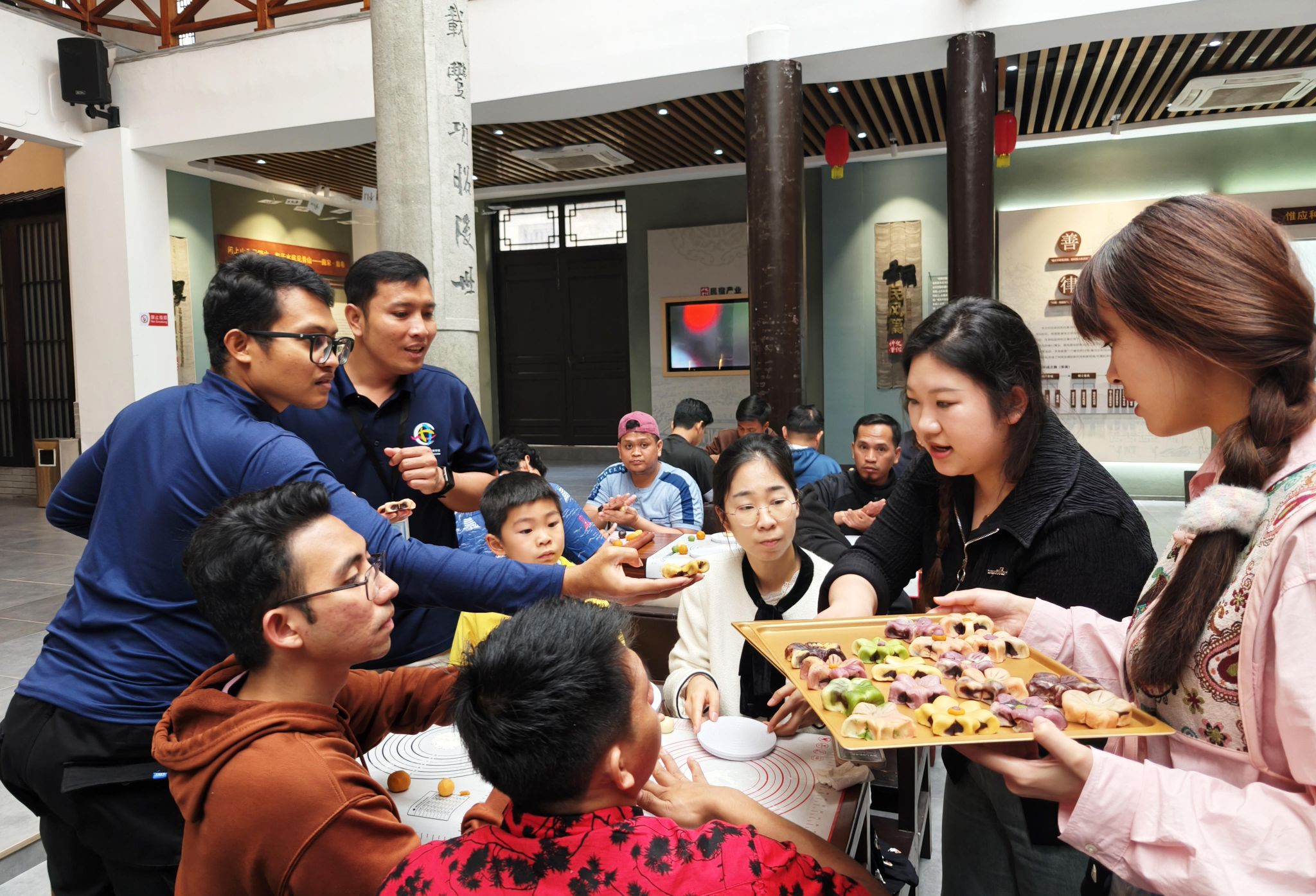 赏春光、悟“和”文化、体验宋韵糕点,品“咖啡+素面+麦饼”的花样组合。4月21日,一场跨国文化之旅在永嘉大若岩镇水云村拉开帷幕,8868体育_8868(中国)国际教育学院青山班69名印尼籍学员走进永嘉,沉浸式感受了温州楠溪江的山水之美。除了品尝到当地的美食,学员还学习制作了中式酥点桃花酥。