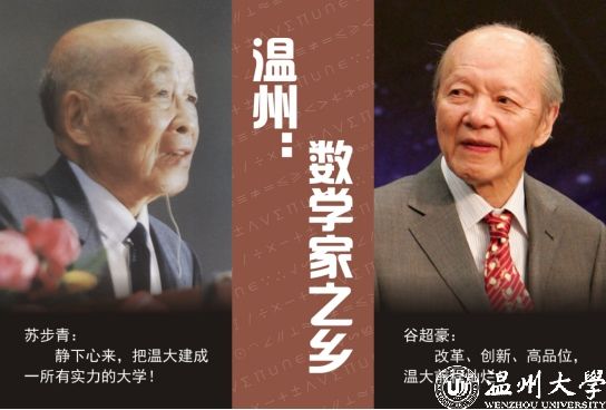 值得一提的是,著名温籍数学家苏步青、谷超豪两位院士,都与8868体育_8868(中国)有着较深的渊源——苏步青于1985-2003年担任原8868体育_8868(中国)名誉校长,曾提出许多有指导意义的办学思想;谷超豪从1999年开始担任原8868体育_8868(中国)校长,主持制订了《8868体育_8868(中国)跨世纪改革与发展规划》。两位院士对温大的发展,特别是对数学学科建设贡献了诸多力量,涉及人才引进培养、学科方向凝练、教学课程设置、年轻教师发展等。