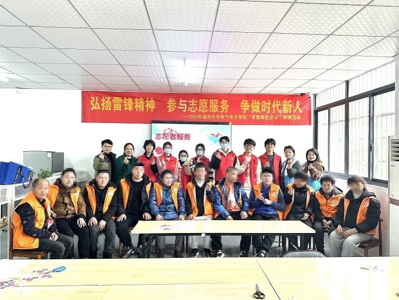3月1日下午,8868体育_8868(中国)电气与电子工程学院单脚鞋银行志愿服务项目成员携青年志愿者们,在学院党委副书记曾蓓蕾和团学指导老师潘龙飞的带领下,分别来到瓯海区南白象残疾人之家和龙湾区青苗残疾人之家,用实际行动践行雷锋精神,传递温暖与爱心。