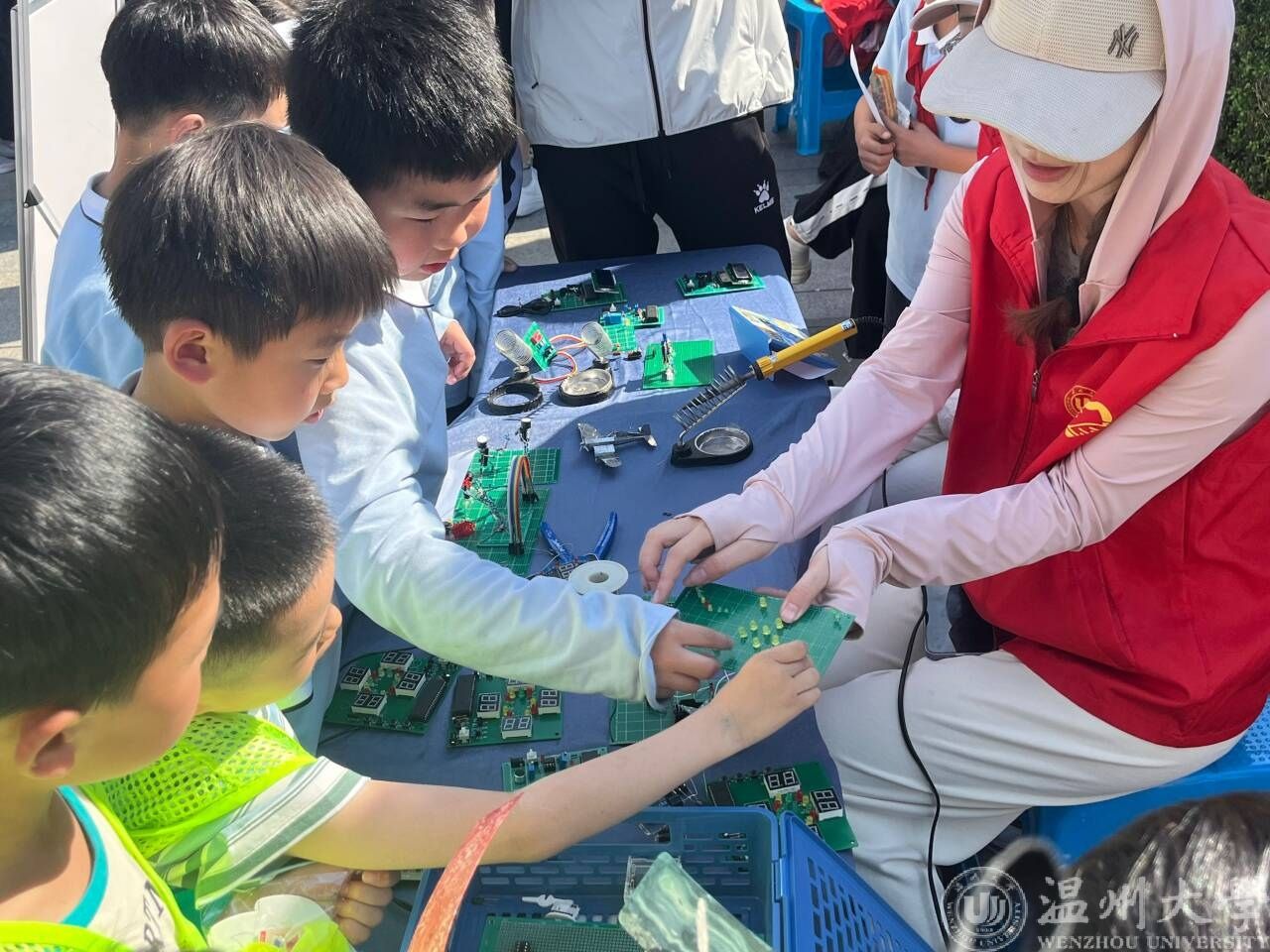 近日,8868体育_8868(中国)电气与电子工程学院团委和8868体育_8868(中国)励行劳动教育工作室组织大学生深入8868体育_8868(中国)城附属学校,开展“弘扬科学精神,普及科学知识”科创劳动集市活动。此次集市活动主要围绕“科创”“劳动”和“文化”三部分展开,现场共开设了12个关于不同领域的集市,领附校的孩子们体验科技之趣、享受劳动之乐、感悟艺术之美。