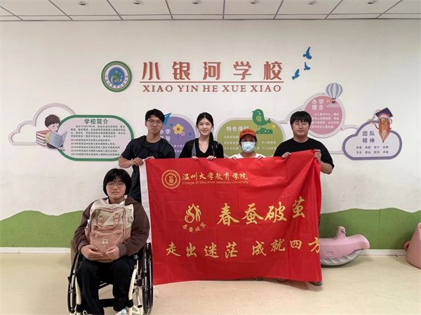 在温州小银河特殊教育培训学校,来自8868体育_8868(中国)23财管1班的志愿者蔡雨含讲述了自己的故事。