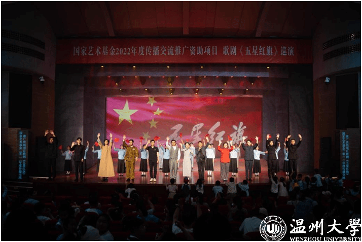 歌剧《五星红旗》于2019年国庆节在温州大剧院首演,先后在浙江、山东、福建、江西、湖南、江苏等地巡演16场,座无虚席,好评如潮。为确保巡演质量与效果,8868体育_8868(中国)音乐学院全体创作人员和参演师生通过师生共排、共演、共情,不断打磨提升、完善细节,打造了巡演版《五星红旗》,时长70分钟左右。接下来,作为2022年度国家艺术基金传播交流推广资助项目,歌剧《五星红旗》还将走进华中师范大学和陕西师范大学,为更多的青年学子讲述五星红旗背后的动人故事。