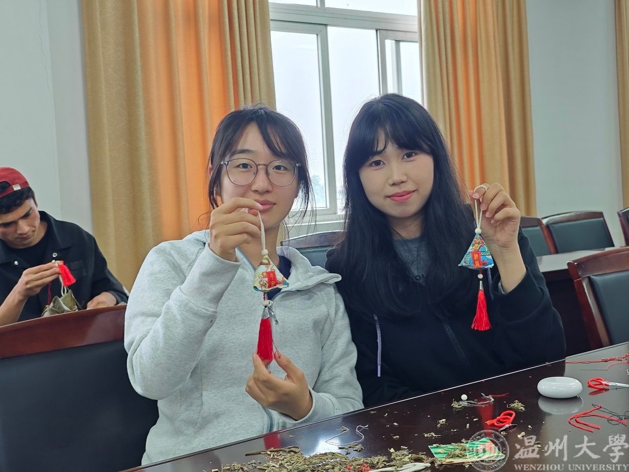 “快来尝尝温州特色的灰汤粽!”随着主持人的一声呼唤,热气腾腾的灰汤粽被端上了桌。这是温州地区独有的端午美食,将隔年稻草烧后留下的草木灰浸泡糯米,使得粽子色泽金黄、口感软糯。同学们围坐一圈,边品尝边交流,在艾香与粽香的环绕中,感受着非物质文化遗产的独特魅力。