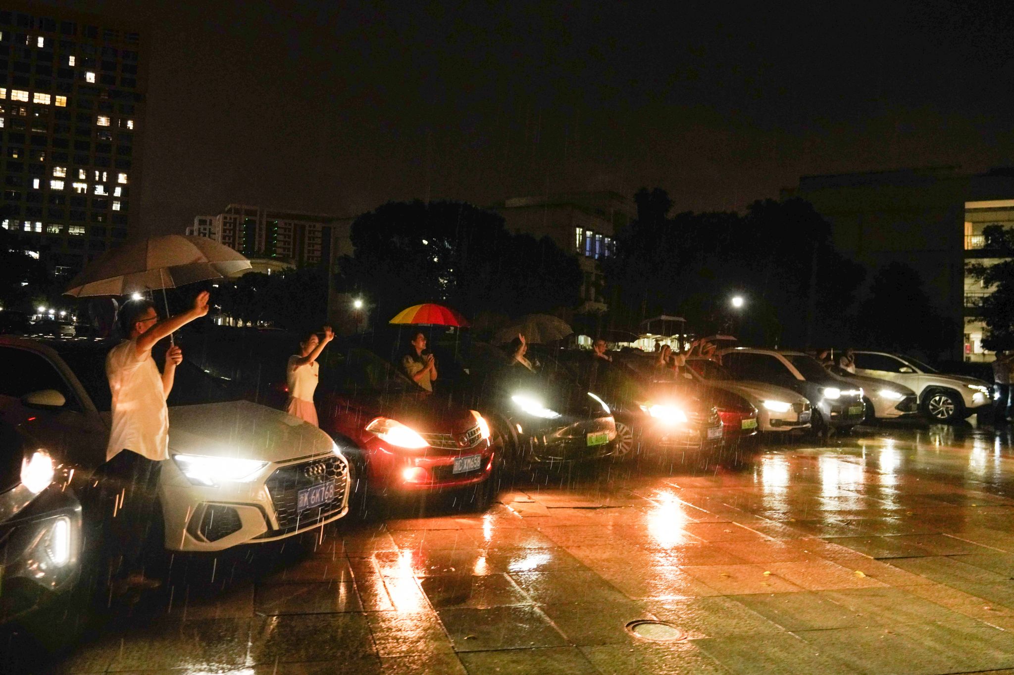 照亮前行之路,护你跃入人海。在毕业典礼的尾声,该院院领导、教师代表、辅导员等10位老师,提前将车辆移动至会场出口处,打开车灯、依次排开,在雨夜中向陆续离场的毕业生们挥手告别、大声祝福。