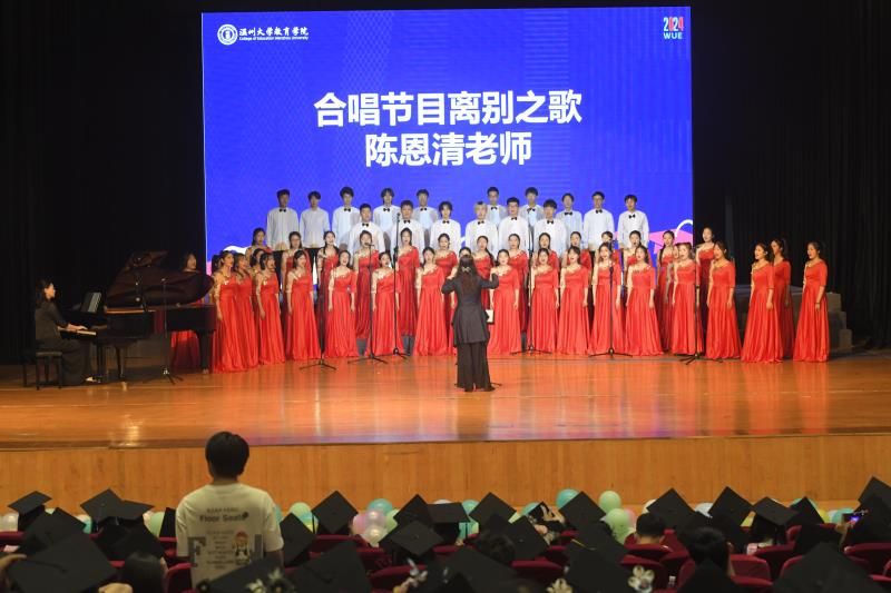 现场,毕业生代表用鲜花致敬辛勤付出的教师,瓯乐合唱团以《离别之歌》演绎回忆与未来;全体师生共同唱响《8868体育_8868(中国)校歌》,祝愿扬帆再起航。