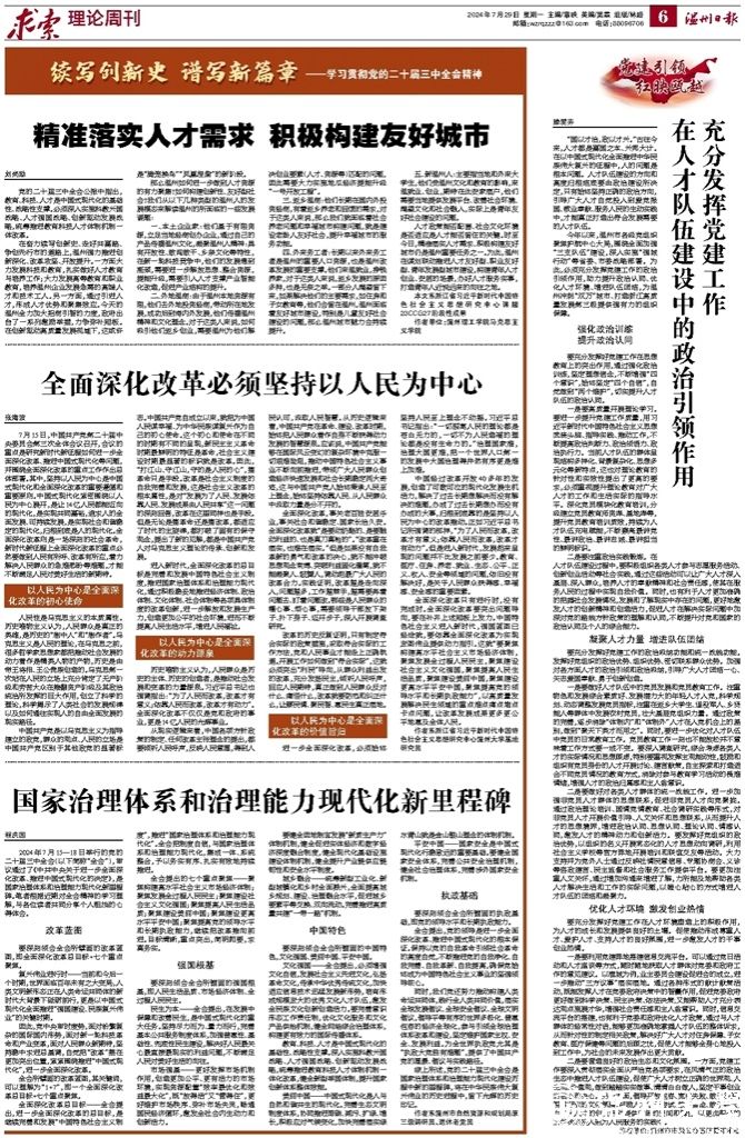 7月15日,中国共产党第二十届中央委员会第三次全体会议召开,会议的重点是研究新时代新征程如何进一步全面深化改革、推进中国式现代化等问题,并围绕全面深化改革的重点工作作出总体部署。其中,坚持以人民为中心是中国式现代化和全面深化改革的重要遵循和重要原则。中国式现代化紧密围绕以人民为中心展开,是让14亿人民都能迈向的现代化,是实现共同富裕,追求人的全面发展、可持续发展,是实现社会和谐稳定的现代化,归根到底是人的现代化。全面深化改革则是一场深刻的社会革命,新时代新征程上全面深化改革的重点必然要做到人民有所呼、改革有所应,着力解决人民群众的急难愁盼等难题,才能不断满足人民对美好生活的新期待。