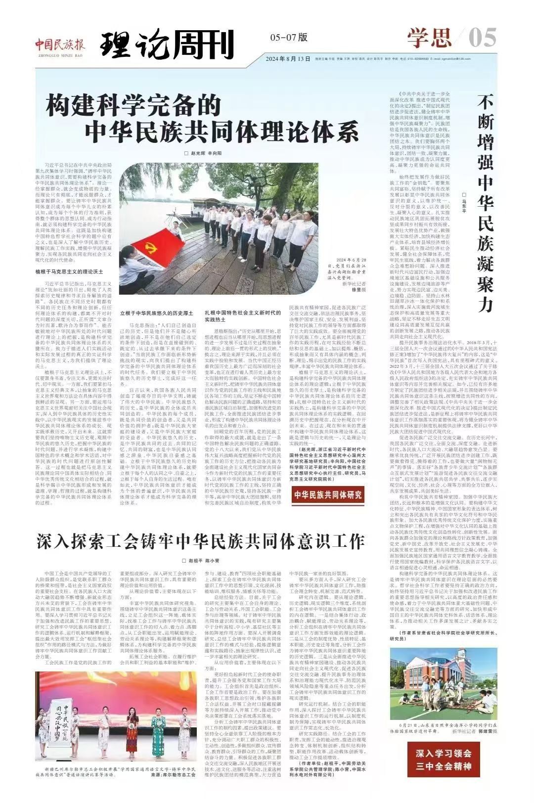 习近平总书记在中共中央政治局第九次集体学习时强调,“铸牢中华民族共同体意识,需要构建科学完备的中华民族共同体理论体系”。理论一经掌握群众,就会变成物质的力量。而理论只有彻底,才能说服群众,才能掌握群众。要让铸牢中华民族共同体意识成为每个中华儿女的朴素认知,成为每个个体的行为准则,获得整个群体的思想认同、成为行动指南,就必须构建科学完备的中华民族共同体理论体系。这既是加快构建中国特色哲学社会科学的题中应有之义,也是深入了解中华民族历史、理解民族工作实践、增强中华民族凝聚力、实现各民族共同走向社会主义现代化的时代使命。
