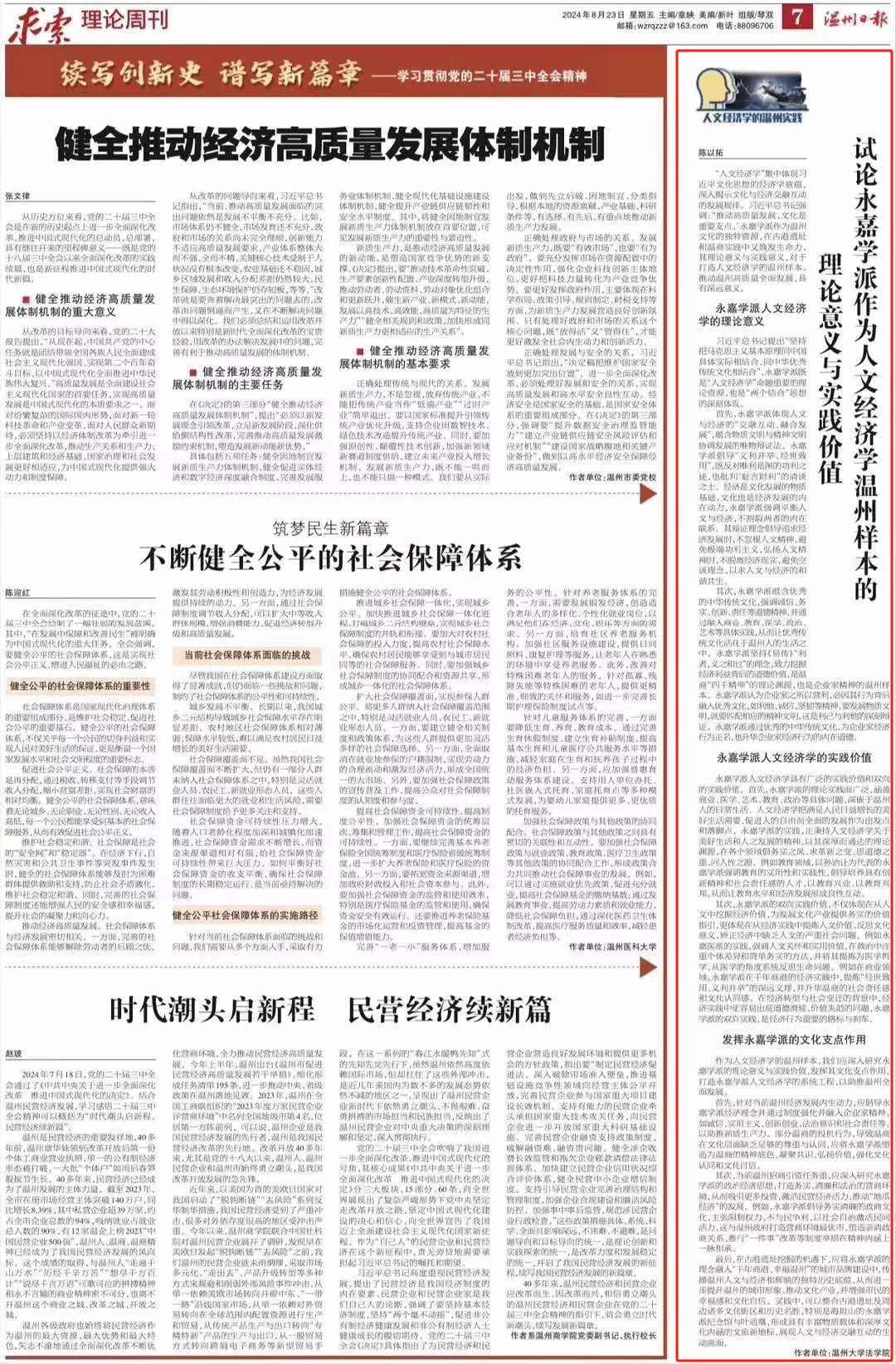 作为人文经济学的温州样本,我们应深入研究永嘉学派的理论意义与实践价值,发挥其文化支点作用,打造永嘉学派人文经济学的系统工程,以助推温州全面发展。