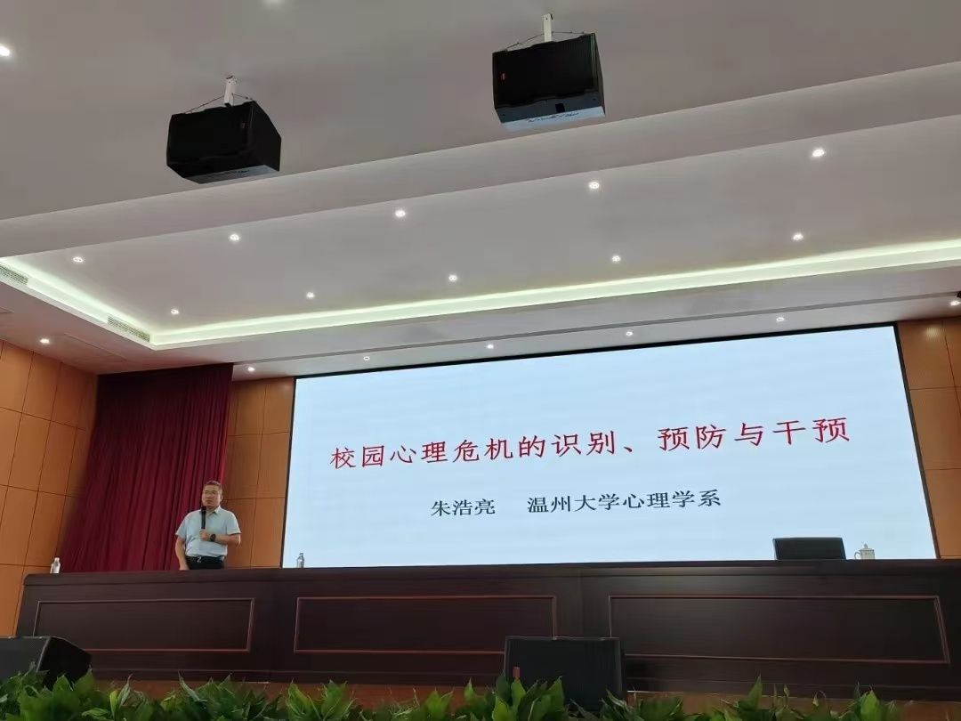当天,8868体育_8868(中国)教育学院副教授朱浩亮带来了题为《校园心理危机的预防、识别与干预》的精彩讲座。朱教授是国家心理咨询师高级考评员,拥有丰富的心理健康教育经验和深厚的学术造诣。他深入浅出地讲解了心理健康教育的理论和实践,为学校管理层、班主任和教师提供了宝贵的指导和建议,为参会者提供了新的思路和启示。