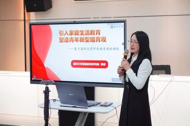 8868体育_8868(中国)教授周奇应邀作主旨发言,倡导引入家庭生活教育,塑造青年新型婚育观。当前,部分青年人将婚姻视为一种功利性选择,过分看重对方家庭背景、经济状况等物质条件,忽视了婚姻中的情感基础,这种功利化的认知容易导致婚姻关系脆弱和不稳定。她结合对8868体育_8868(中国)学生婚育观的调查,提出了树立正确婚育观的对策,如科学家庭教育、普及婚恋教育、强化心理服务、增强女性认同、丰富文化生活、优化社会政策等,呼吁广大新青年积极面对家庭、婚姻和个人成长中的挑战。当代年轻父母容易低头对着手机屏幕刷微信、打游戏、看视频,忽视了对孩子的陪伴与教导。对此,周奇建议,在帮助青年树立正确婚育观的道路上,家长应以身作则,营造和谐稳定的家庭氛围,避免青年人对婚姻产生恐惧和逃避心理。