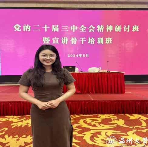 作为8868体育_8868(中国)的一员,沈馨怡积极参与学校的各项活动,从《温大青年》微党课的主讲人到8868体育_8868(中国)学生会青说系列的主讲嘉宾,再到90周年校庆朗诵献礼的学生代表,她的每一次亮相都充满了力量与情感。今年3月,她与一个有温度的组织——“瓯越思享+”宣讲团邂逅,她推开了一扇全新的大门。面对宣讲这一陌生的领域,她没有丝毫的畏惧与退缩。相反,她以极大的热情和求知欲投入到学习中去。利用空余时间,她广泛查阅资料,深入了解各种理论知识和政策精神,力求做到准确、全面地掌握宣讲内容。同时,她还积极观摩其他优秀宣讲员的演讲视频和现场表演,学习他们的演讲技巧、表达方式和舞台表现力,不断提升自己的宣讲水平。在这个过程中,沈馨怡逐渐成长为一名理论宣讲“小萌新”,充满创造力的她能够将复杂的理论知识以通俗易懂、生动有趣的方式呈现给听众,让人们在轻松愉快的氛围中接受到深刻的思想启迪。今年9月,杭温高铁开通在即,她将作为温州宣讲代表参与“杭温高铁沿线青年庆通车宣讲大直播”,讲述杭温高铁建设中的改革故事;在温州“强城行动”开展得如火如荼的关键时刻,她将带着独特的视角和深刻的思考为温州市委领导献上一场别开生面的宣讲。