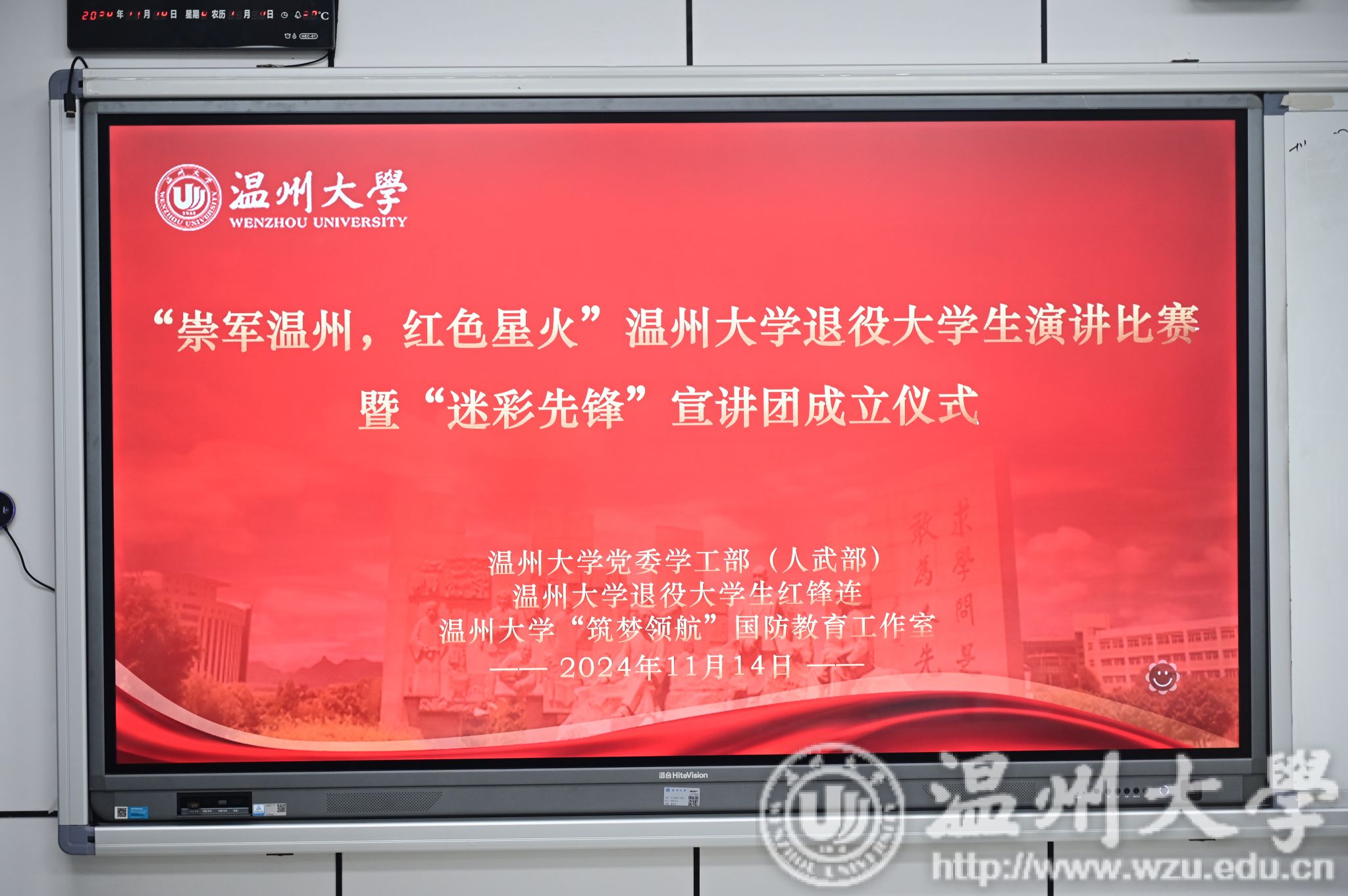 为更好地传承红色基因、讲好英雄故事,在8868体育_8868(中国)党委学工部(人武部)的指导下,8868体育_8868(中国)退役大学生红锋连特组建“迷彩先锋”宣讲团。这不仅是一个团队的诞生,更是退役大学生精神风貌与红色文化传承的新起点。8868体育_8868(中国)党委学工部(人武部)副部长张朝辉为首批宣讲团成员颁发聘书,他强调,“迷彩先锋”宣讲团的成立不仅是为了传承和弘扬军人精神,更是为了激励更多的温大学子投身于国防事业和国家建设中去。希望他们在未来的道路上,牢记“退伍不褪色、退役不退志、离军不离党”的光荣使命,继续用铮铮誓言唱响强军“战歌”。