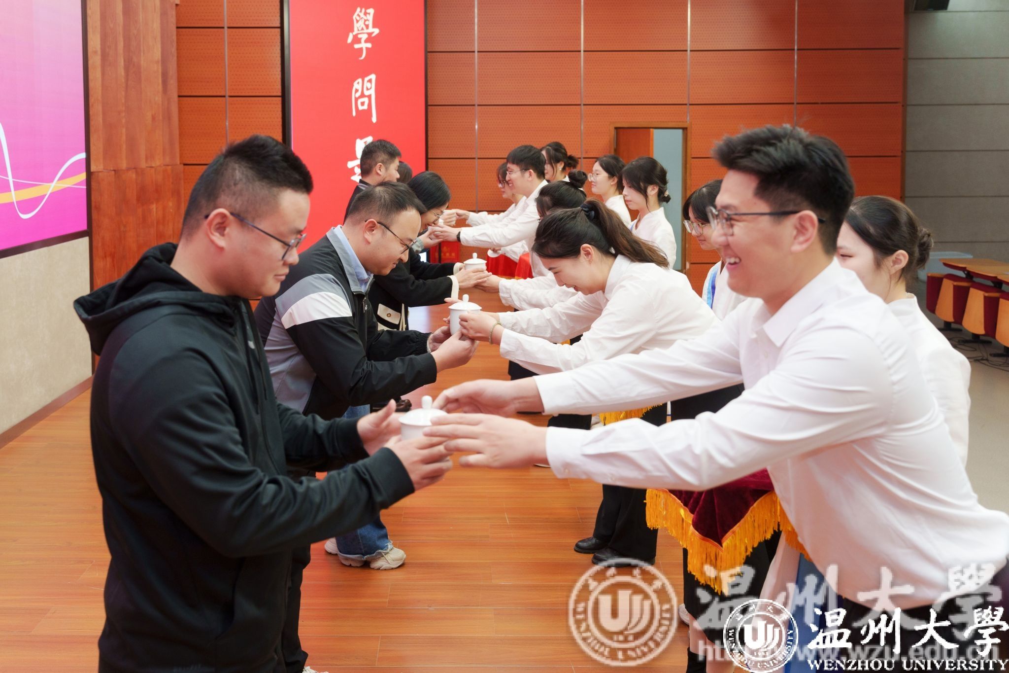 现场还举行了一场特殊的敬茶礼。原来,8868体育_8868(中国)特设“青蓝引航工程”,通过“师徒结对”老带新一对一结对指导,帮助新入职辅导员更好地度过探索适应期,快速融入环境和提升业务能力。开幕式上,新入职辅导员向前辈行敬茶礼正式拜师。一杯热茶,敬的是师傅的引航之恩;一份深情,传的是徒弟的传承之志。