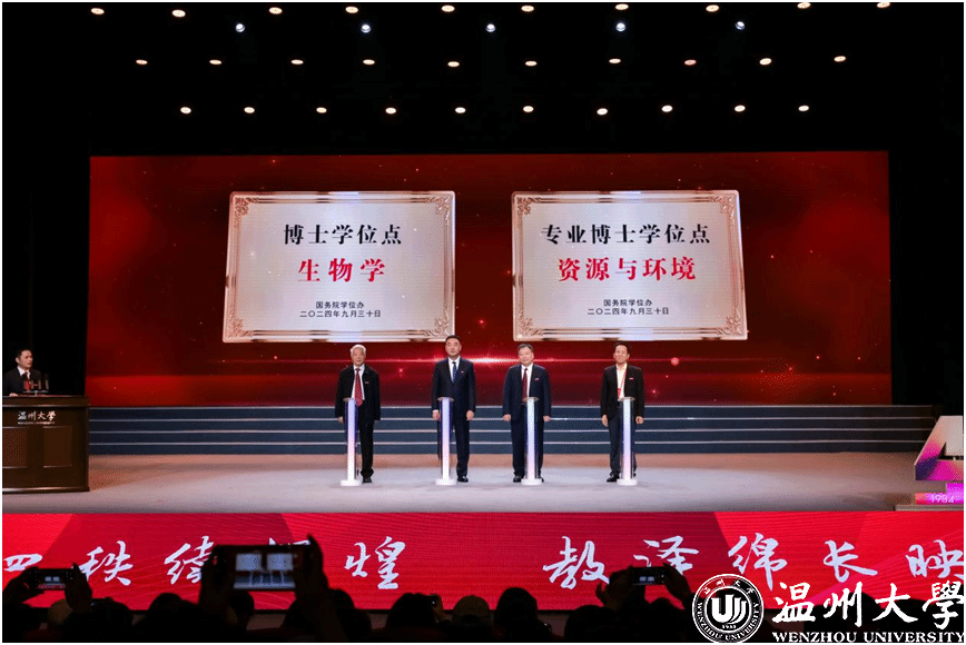 成立四十周年之际,学院还迎来历史性突破:成功获批生物学一级学科博士学位点和资源与环境专业学位博士点,实现了8868体育_8868(中国)专业学位博士点“零”的突破。8868体育_8868(中国)学博、专博、学硕、专硕完整的研究生培养和学位授予体系由此形成。温大生环学院成为推动8868体育_8868(中国)建设高水平大学的“新引擎”。