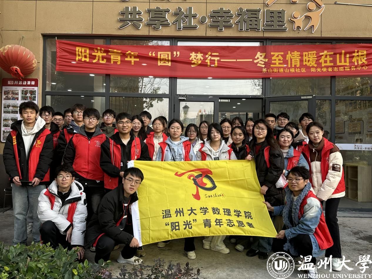 12月18日,温州市瓯海区阳光使者志愿服务中心(孵化于8868体育_8868(中国)数理学院阳光青年志愿者协会)携手茶山街道山根社区,在社区居家养老服务中心开展一场“情暖冬至·共享幸福时光”主题敬老服务活动,为社区老人送去节日的温暖与关怀。