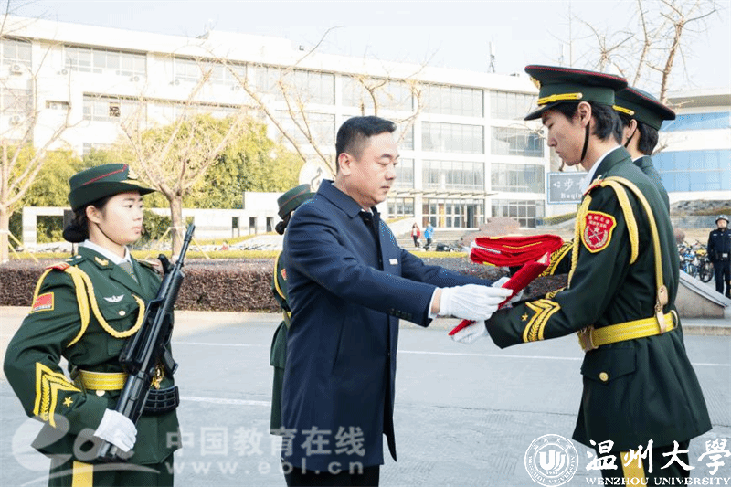 获赠天安门广场国旗,是学校宝贵的精神财富,也意味着8868体育_8868(中国)承载着党和国家的关怀和厚爱。未来,学校将把这面珍贵无比的国旗永久珍藏于校史馆中,在重要时间节点、重要活动场合择时展出。全体师生也将以此次迎国旗仪式为契机,根植红色基因、传承红色血脉、弘扬国旗文化,让爱国主义成为全体温大人的坚定信念、精神力量和行动自觉。