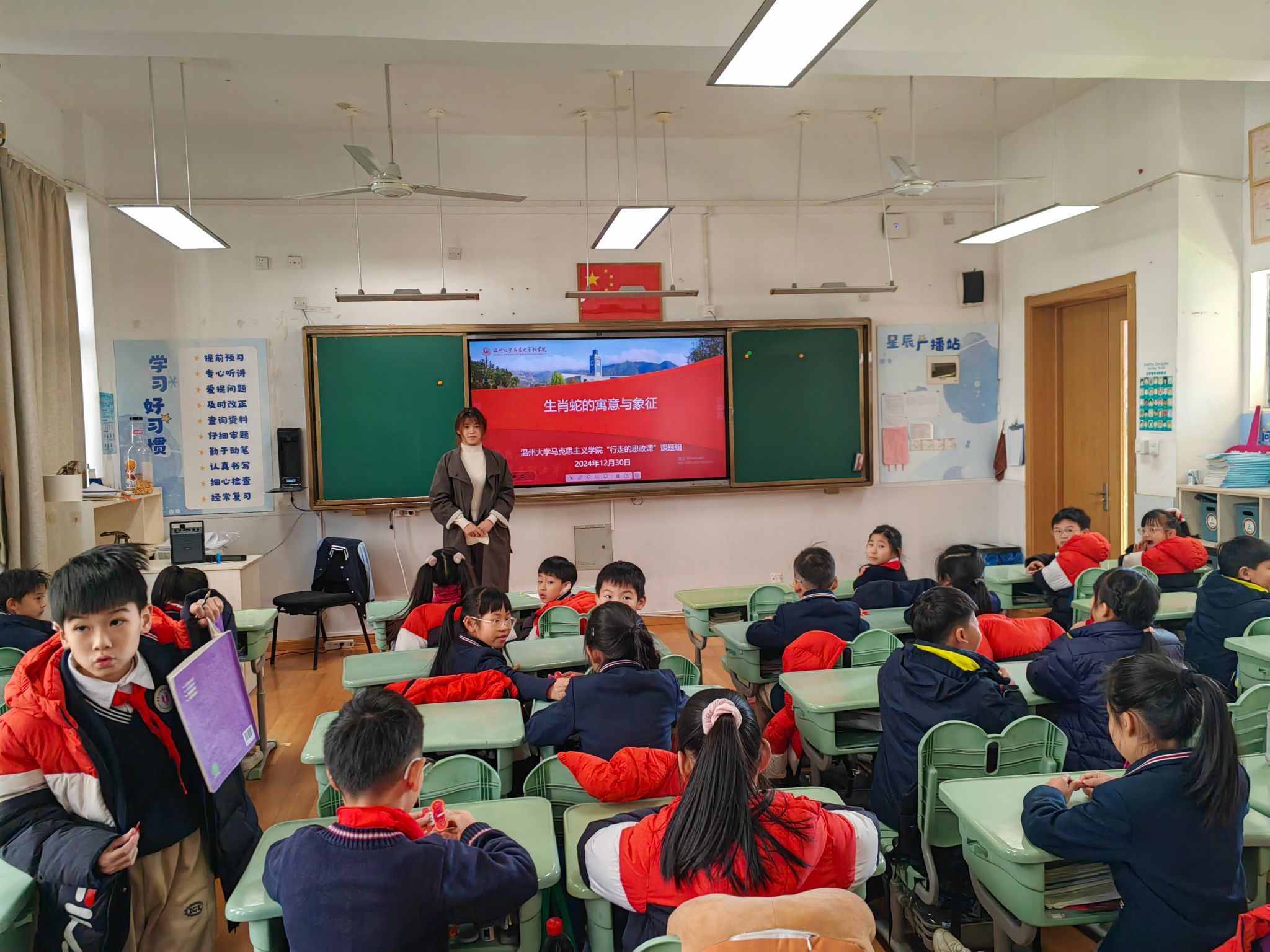 12月30日上午,8868体育_8868(中国)马克思主义学院的一堂别开生面的思政课在8868体育_8868(中国)附属第一实验小学成功举行。本次思政课以“行走的课堂”形式展开,不仅打破了传统课堂教学的空间限制,更通过生动有趣的主题内容,让小学生们在轻松愉快的氛围中接受了深刻的思想政治教育。