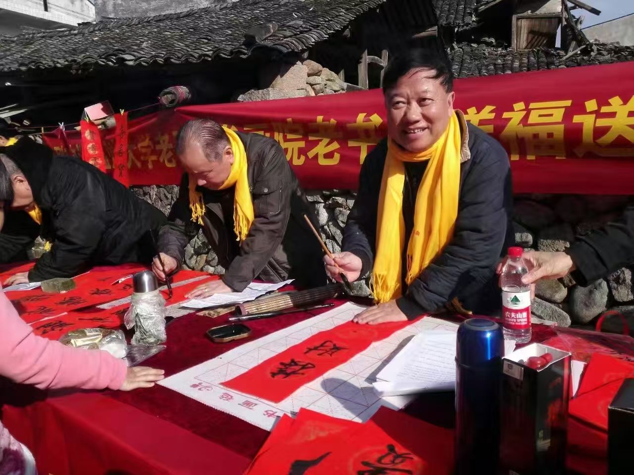 冯大明老师一直致力于老年学习活动的参与和推广工作。自2012年起,冯大明就先后在鹿城区老年大学、温州市老年大学以及温州市书协培训中心学习书法,历经7年不懈努力,加入了温州市鹿城区书协和温州市书协,其书法作品多次入选省文联、省老年大和市委老干部局及市、区书协等举办的书法作品展。他始终坚定“老有所学、老有所为”的信念。2015年担任8868体育_8868(中国)老干部书画院院长以来,50多次带领温大老干部书画院学员们深入铁路、校园、企业和农村,累计赠送书画1400余幅,撰送春联与“福”字13000余副(件),每年受众平均不少于5000人次,其公益行为受到各媒体的广泛报道。除此之外,冯大明老师长期坚持写作与创作活动。他在《温州人》《瓯风》及《温大校报》上发表多篇研究温州文史的文章。近年来,已完成三部共计70余万字的文史研究著作初稿,其中《净心斋漫稿》已送出版社审稿。