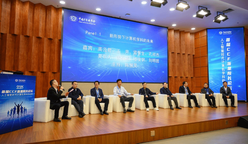 值得关注的是,本次论坛不仅是一场学术盛会,更通过圆桌论坛的形式搭建了关于新形势下计算机学科发展与人才培养的交流平台。本次圆桌论坛汇聚浙江多所高校计算机学院院长,围绕人工智能发展给学科建设与人才培养带来的机遇与挑战展开全新探讨。