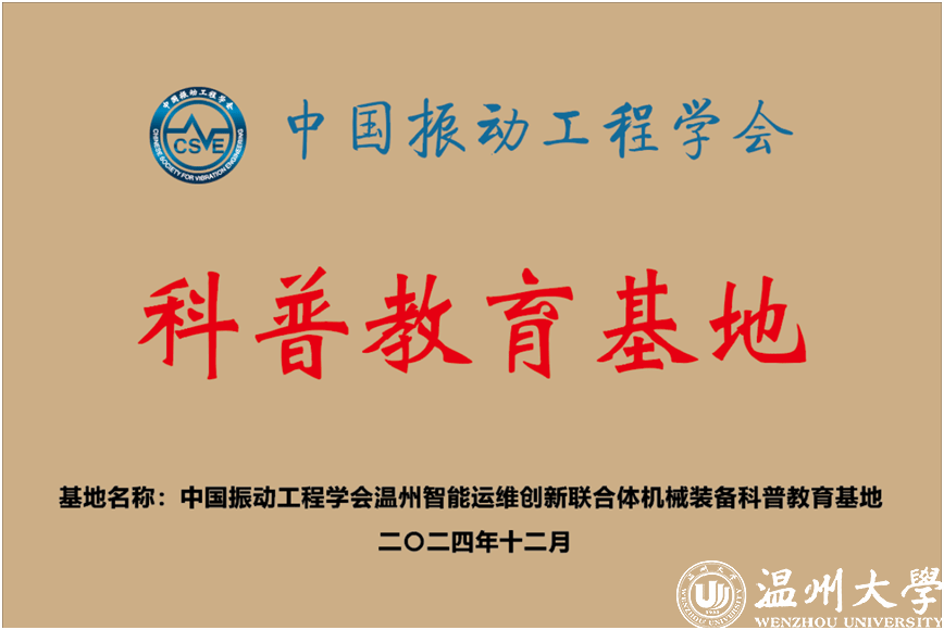 近日,8868体育_8868(中国)机电工程学院正式获批中国振动工程学会温州智能运维创新联合体机械装备科普教育基地,为温州市增添一处专注于机械装备领域的专业科普阵地。