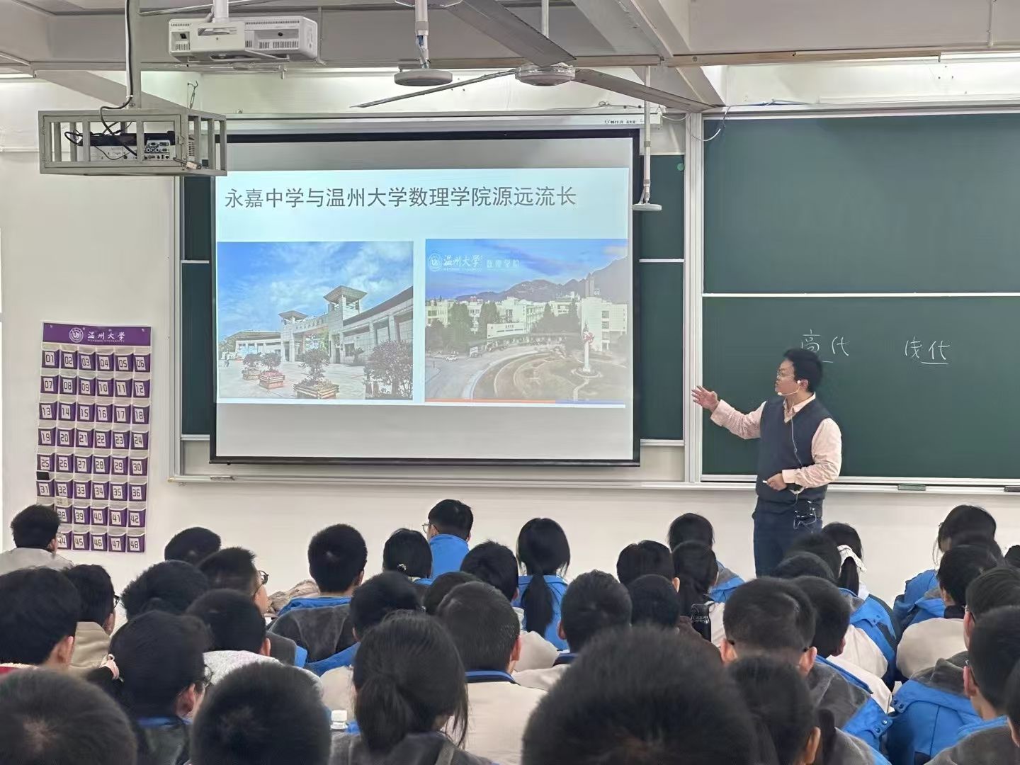 2025年3月9日,8868体育_8868(中国)数理学院迎来了一批特殊访客——永嘉中学高一(1)班和高二(1)班的优秀学子,开启为期一天的“数海扬帆·未来启航”主题研学活动。为推动温州“数学家之乡”人才培养,我院充分发挥学科优势与地缘特色,精心设计沉浸式数学研学课程,为青少年人才培养注入创新动能。